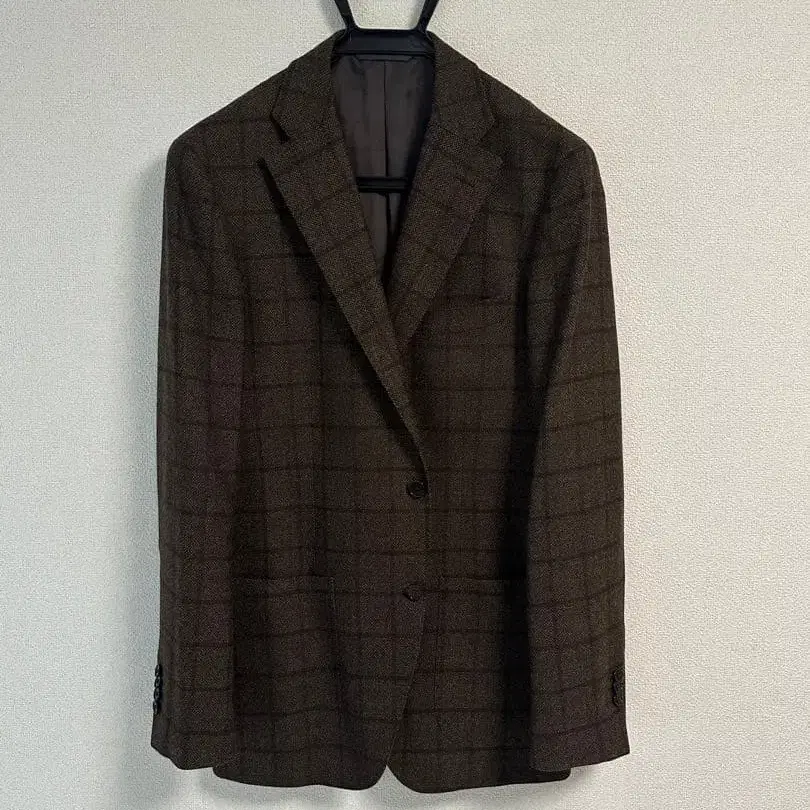 REDA1865 브라운 체크 무늬 테일러드 자켓