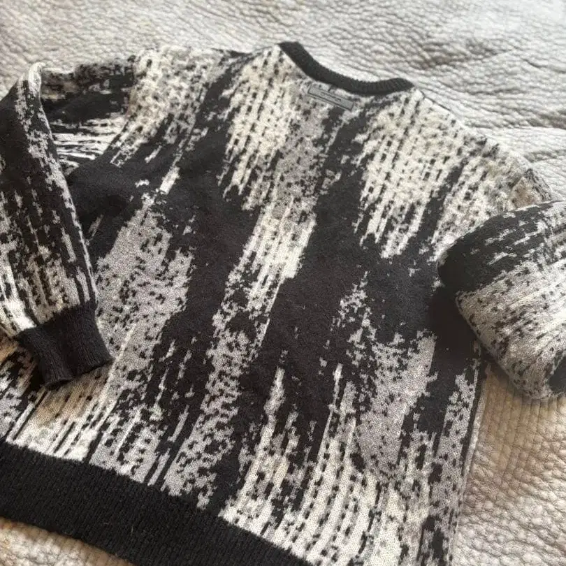 블랙 화이트 추상 니트 스웨터