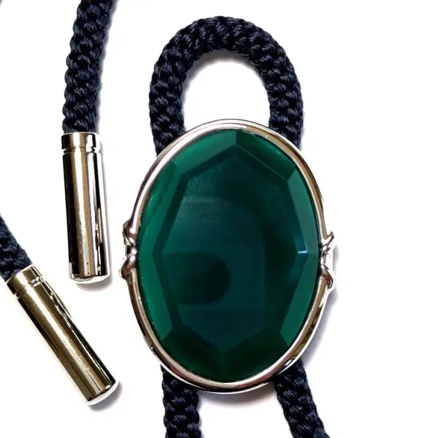 nlt44 루프 타이/보로 타이 실버 x 그린 녹색 마노/마노 실크/실크