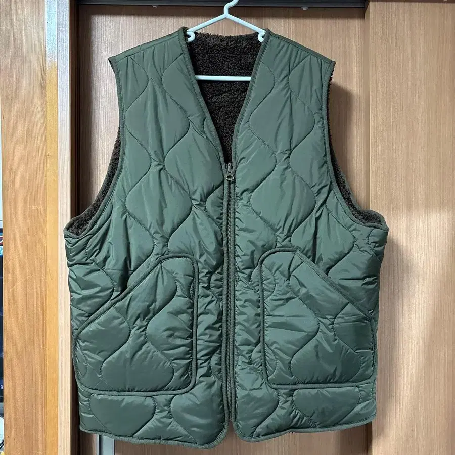 리버서블 퍼 베스트 충전솜 퀼팅 다운 베스트 올리브