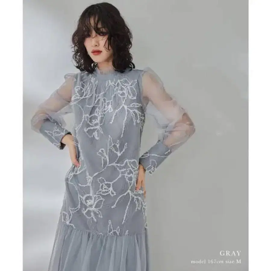 새상품 L 사이즈 이긴 니아나 돌리돌 그레이 페더 플라워 튤 드레스