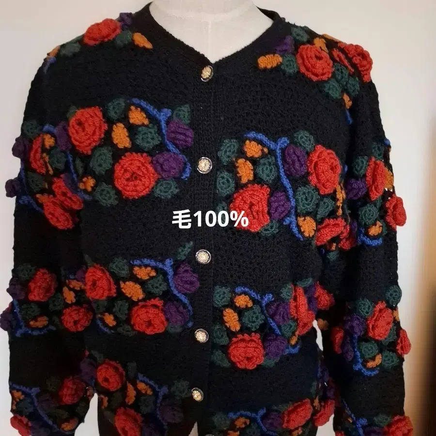 꽃무늬 크로셰 뜨개질 가디건 빈티지 쇼와 레트로