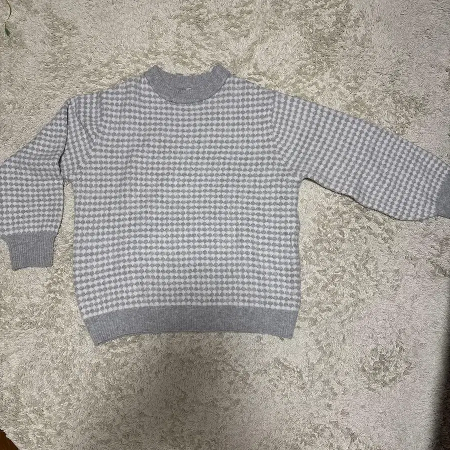 그레이 체크 무늬 긴팔 니트 스웨터 L 사이즈