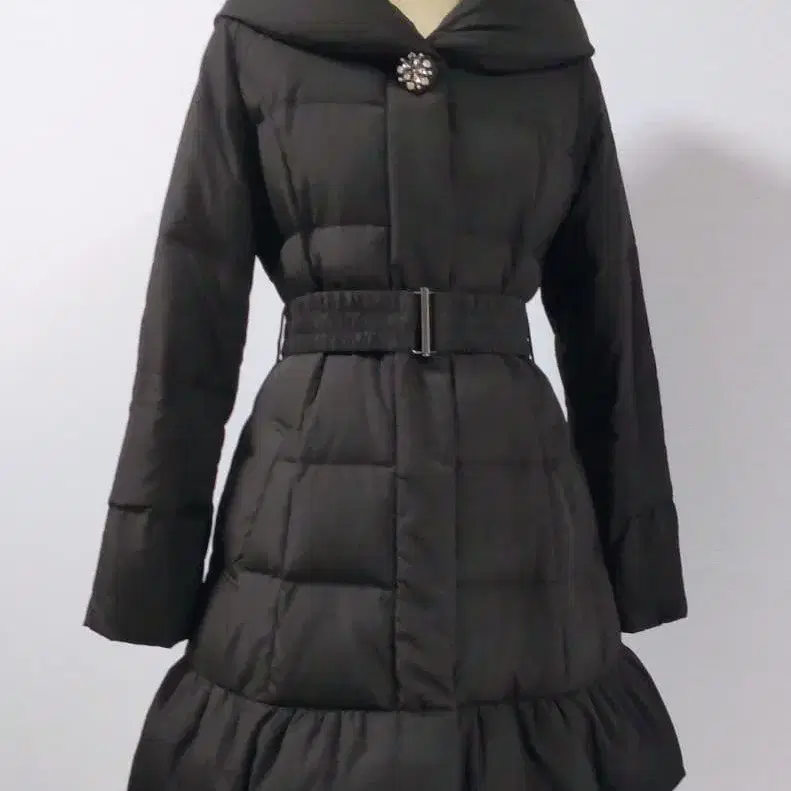 새상품급 데뷔 피오레 다운 코트 비쥬 버튼 플레어 벨트 포함 블랙