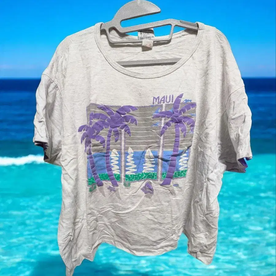 자동 번역되었어요. 원문보기MAUI 프린트의 그레이 계열 반팔 티셔츠, 코튼 혼방 소재로 쾌적한 착용감.