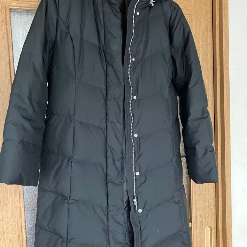 블랙 후드 달린 다운 코트 방한 아우터
