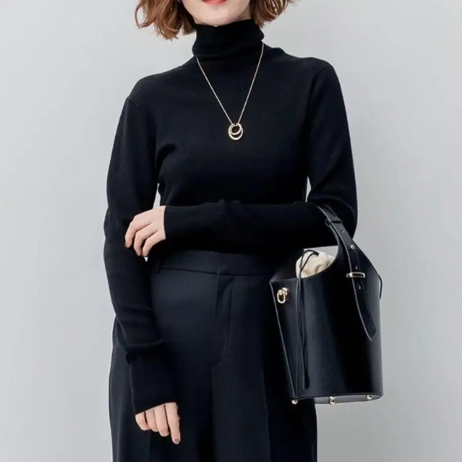 ☆ 울 100%의 심플하고 범용성 있는 리브 터틀넥 풀오버