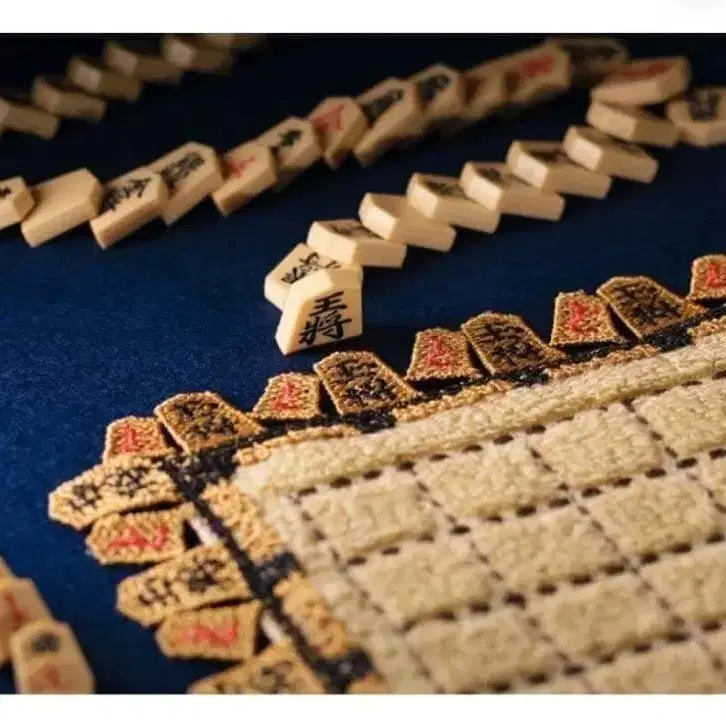디자인을 만드는 데 있어 고생했던 것은 [ 옥 ]이라는 글자입니다. 점의 위치가 1, 2mm만 어긋나도 다른 글자로 보여 매우 어려웠습니다. 초대 [ 장기 ]는 브라운과 블랙 실로 구성되어 있었지만, 이번에는 3번째 색상인 레드 컬러가 더해져 버전업 되었습니다.
