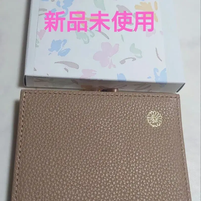 미사용 새상품 접이식 지갑 천연 가죽 지갑 가마구치 모카 브라운