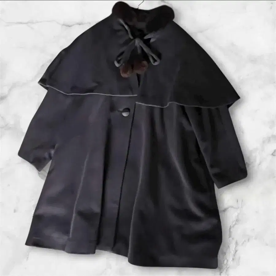 • MARY QUANT 퍼 달린 블랙 판초 케이프 코트