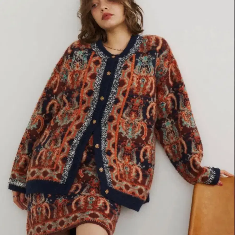 Unitage 가디건 부클레 총무늬 자카드 니트 가디건