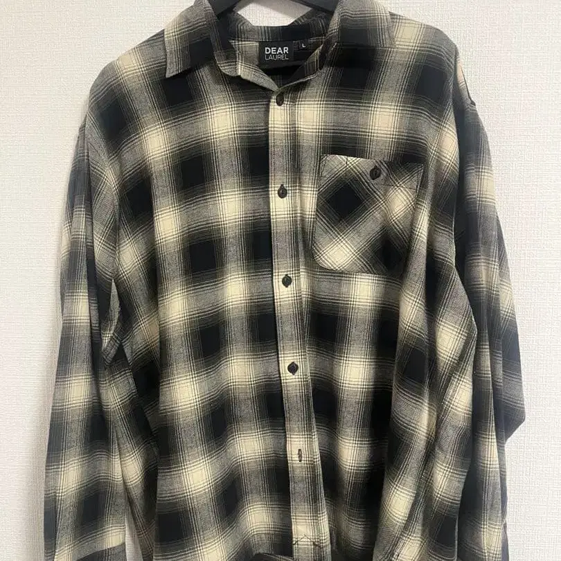 DEAR 체크 무늬 긴팔 셔츠 블랙/아이보리