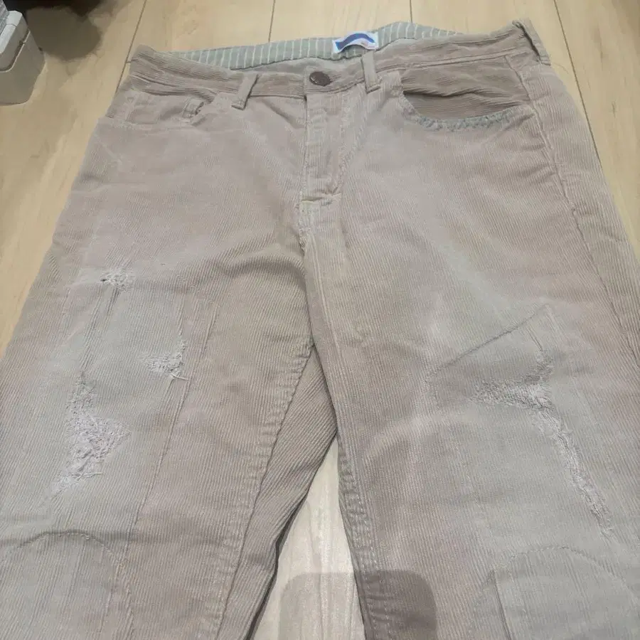 NAKED SUN 베이지 데미지 가공 코듀로이 플레어 팬츠