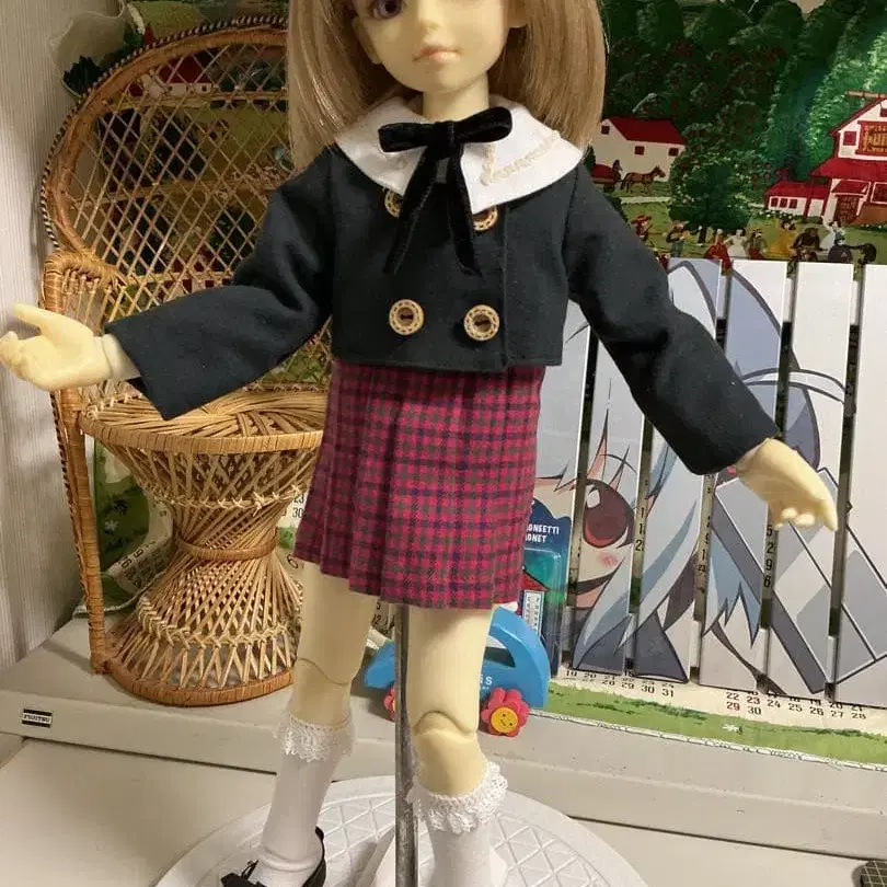 1/4 인형용, 다크 네이비 자켓 & 체크 스커트