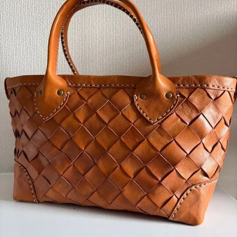 새상품급 피크스피크 소가죽 뜨개질 토트백