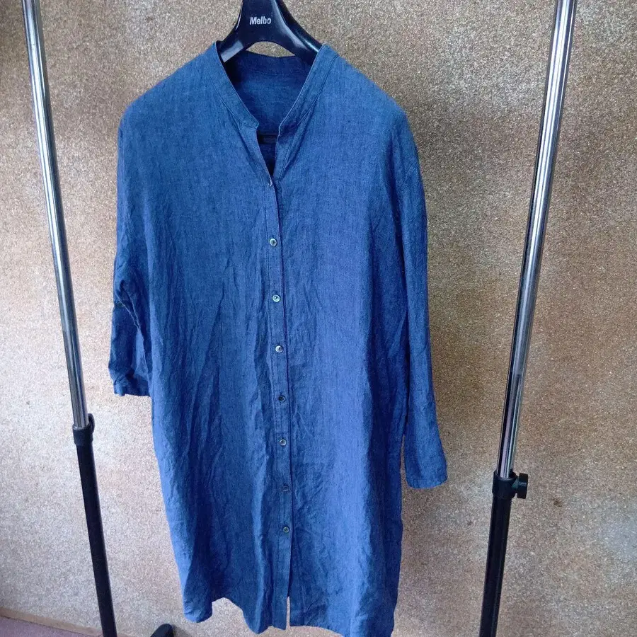린넨 100% L 사이즈 셔츠 원피스 일본제