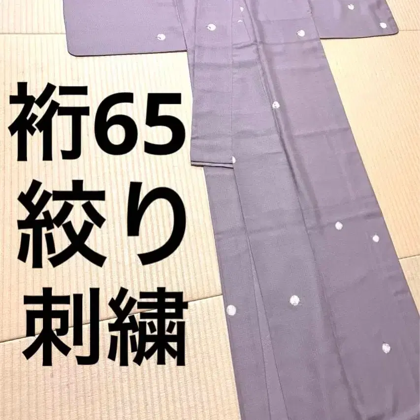 조임 기법의 도트 무늬에 손자수로 놓인 꽃과 잎이 고급스럽고 멋진 기모노입니다.