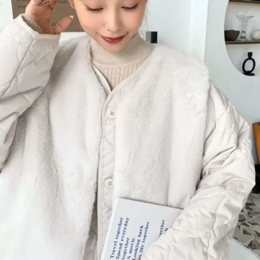 플리스와 퀼팅의 오버 사이즈 자켓, 따뜻한 안감이 특징.