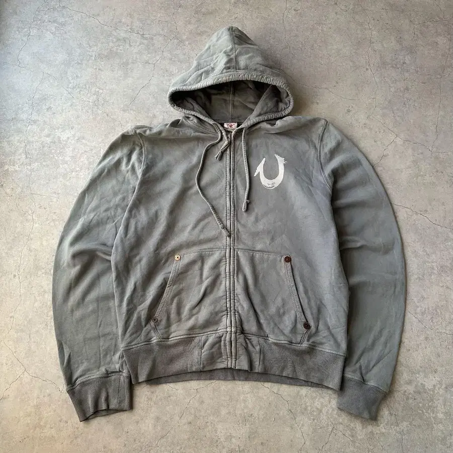 ☑︎ TRUE RELIGION 풀 집업 후드티 로고 그레이