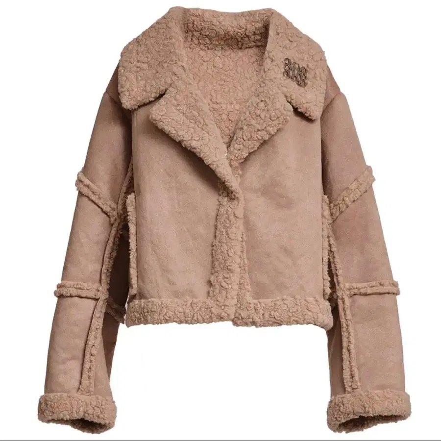 시즌 무드를 살리는 숏 기장의 무스탕 자켓.