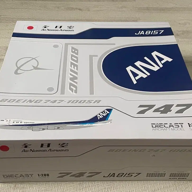 자동 번역되었어요. 원문보기ANA의 Boeing 747-100SR 다이캐스트 모델, 스케일 1:200.