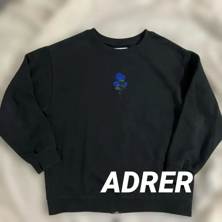 ADRER 블랙 맨투맨 파란 장미 자수