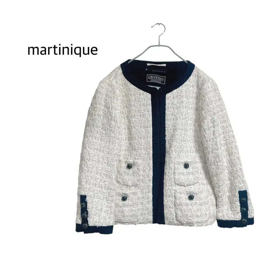martinique 마르티니크 노카라 트위드 자켓 size/1 컬러/화이트 네이비 MADE IN JAPAN 일본제 바이컬러 노카라 자켓입니다. 고급 원단인 영국 LINTON (린톤) 사의 원단을 사용하여 고급스럽고 세련된 자켓입니다. 포켓과 소매에는 메탈 뜨개질 디자인의 장식 버튼이 달려 있어 앤티크, 빈티지 느낌도 나며 매우 멋스럽습니다. 몇 번 착용했습니다. 가지고 계신 옷과 함께 졸업식, 입학식 등 포멀한 자리에도 ◎ 데님과 함께 코디해도 귀엽습니다! □ 사이즈/ 어깨 너비/약 37 가슴 너비/약 47 기장/약 49 소매 길이/약 48 ※ 평평하게 놓음 cm □ 상태/눈에 띄는 상처나 얼룩은 없습니다. 자택 보관 중고품이므로 이해 부탁드립니다. *개인 검품이므로, 작은 상처나 얼룩을 놓칠 수 있으니 양해 부탁드립니다. *개인 치수 측정으로 오차가 있을 수 있으니 참고해주시면 감사하겠습니다. *포장은 방수 대책을 하여 발송합니다. 가능한 한 저렴하게 전달해 드리기 위해 접어서 포장하므로 접힌 자국이 생길 수 있으나 양해 부탁드립니다.
