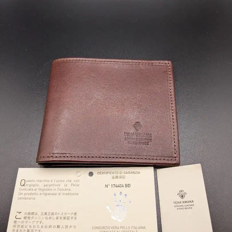 TEHA'AMANA 이단 접이식 지갑 이탈리아 가죽 브라운