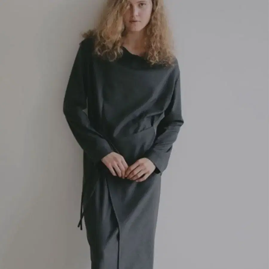 옷깃에 자연스러운 드레이프가 얼굴 주변에 부드러운 인상을 주며, 심플하면서도 세련된 개성을 연출합니다.