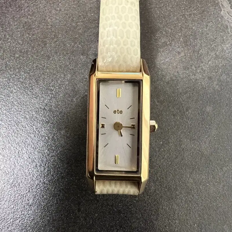 ete 화이트 가죽 직사각형 쿼츠 시계