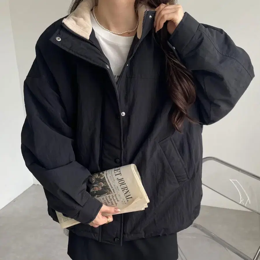 스탠드 카라 볼륨 충전솜 다운 자켓
