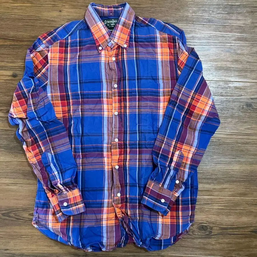 Gitman Bros. 체크 무늬 긴팔 셔츠 15 1/2