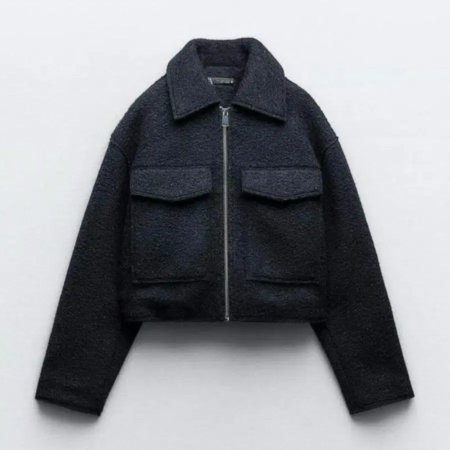ZARA 부클레 크롭 자켓 네이비