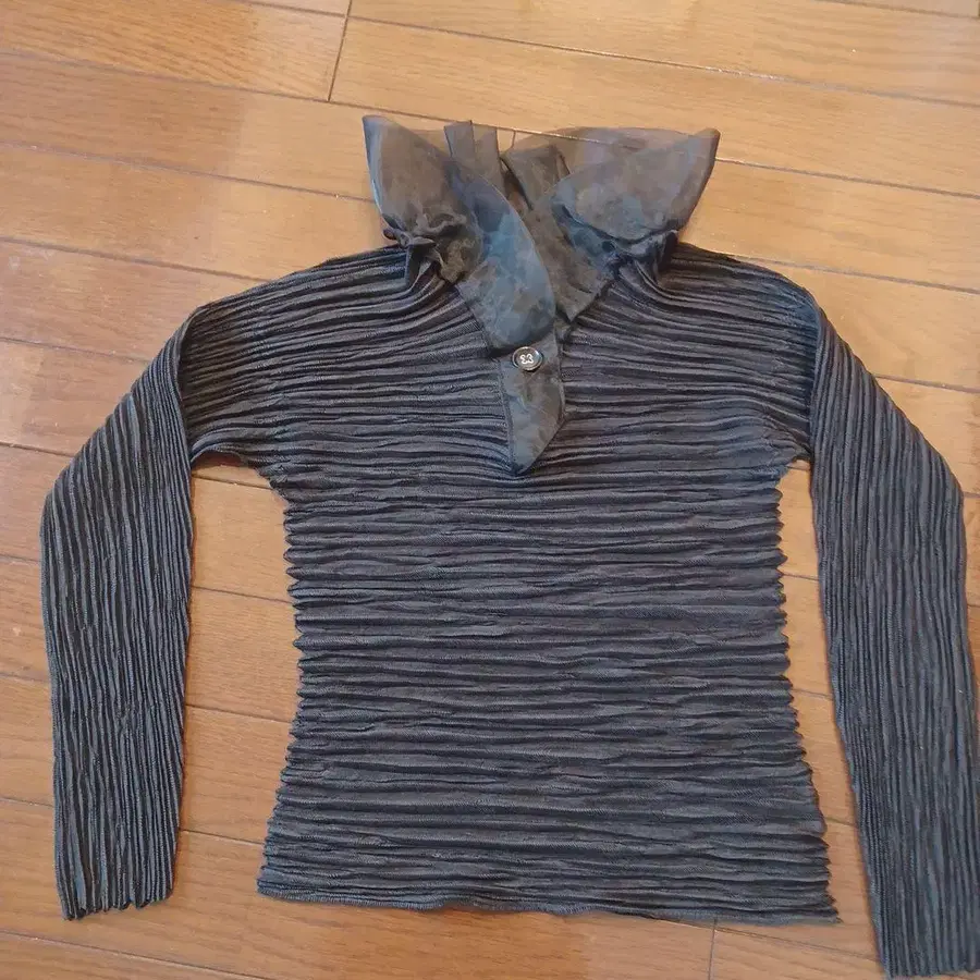 새상품급 하나이 유키코 블랙 플리츠 오간자 프릴 옷깃 블라우스 F