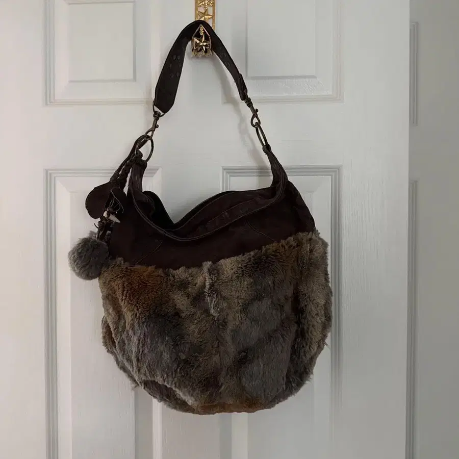 [레이지 수잔] 천연 가죽 토끼털 브라운 퍼 숄더백