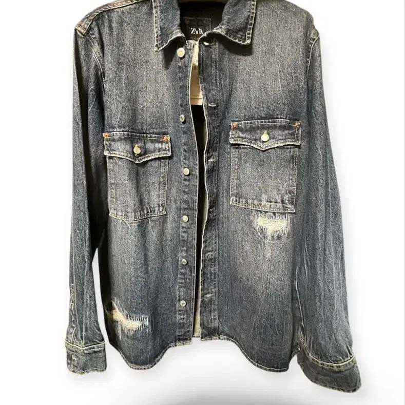 ZARA 자라 데미지 가공 데님 셔츠 L 사이즈 미착용 새상품!