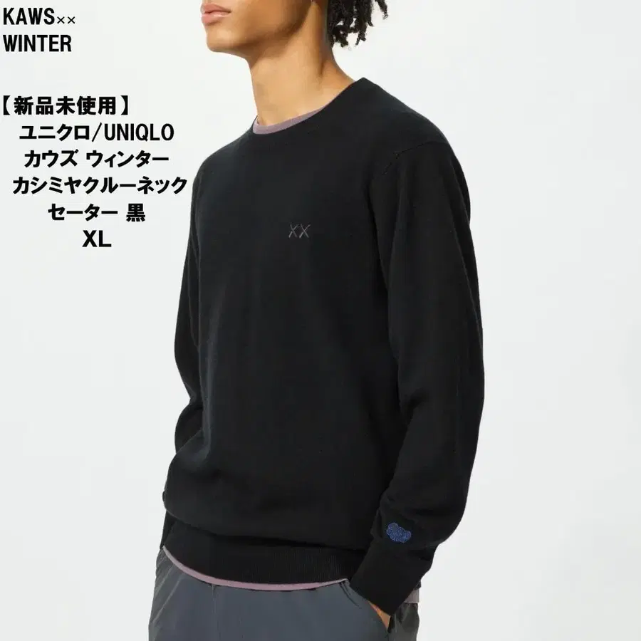 새상품 KAWS x UNIQLO 카우스 윈터 캐시미어 스웨터 XL 블랙