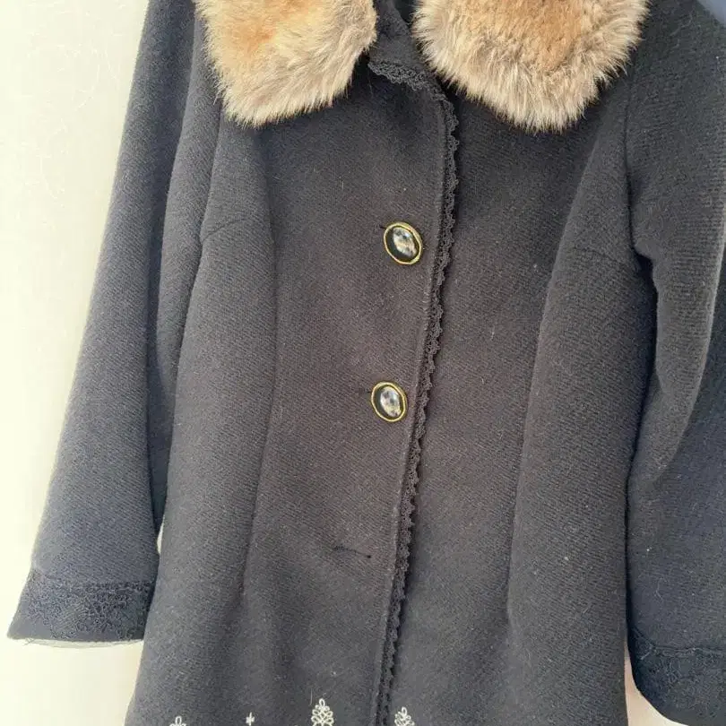퍼 옷깃 블랙 롱 코트 엑시즈팜
