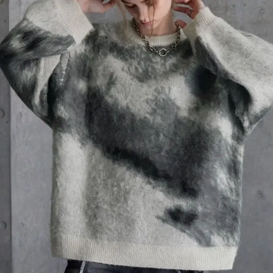 SERACE 루즈 실루엣 추상 샤기 니트