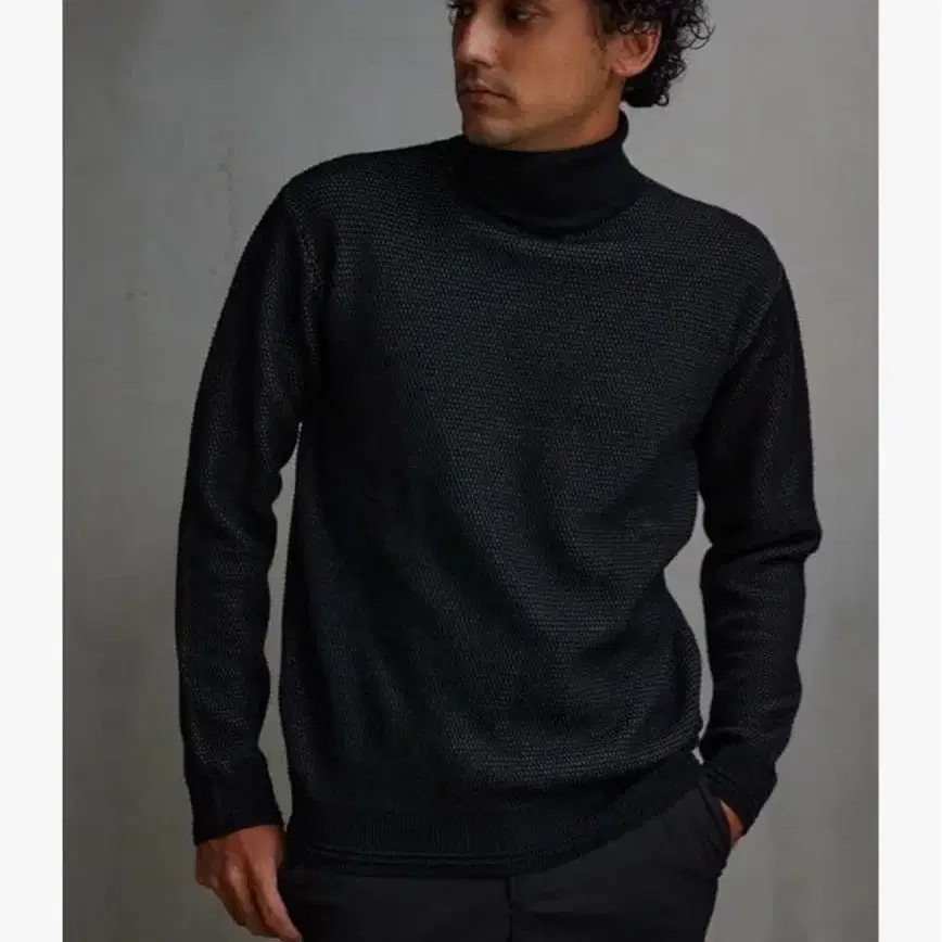아줄바이마우지 블랙 허니콤 베이직 터틀넥 니트