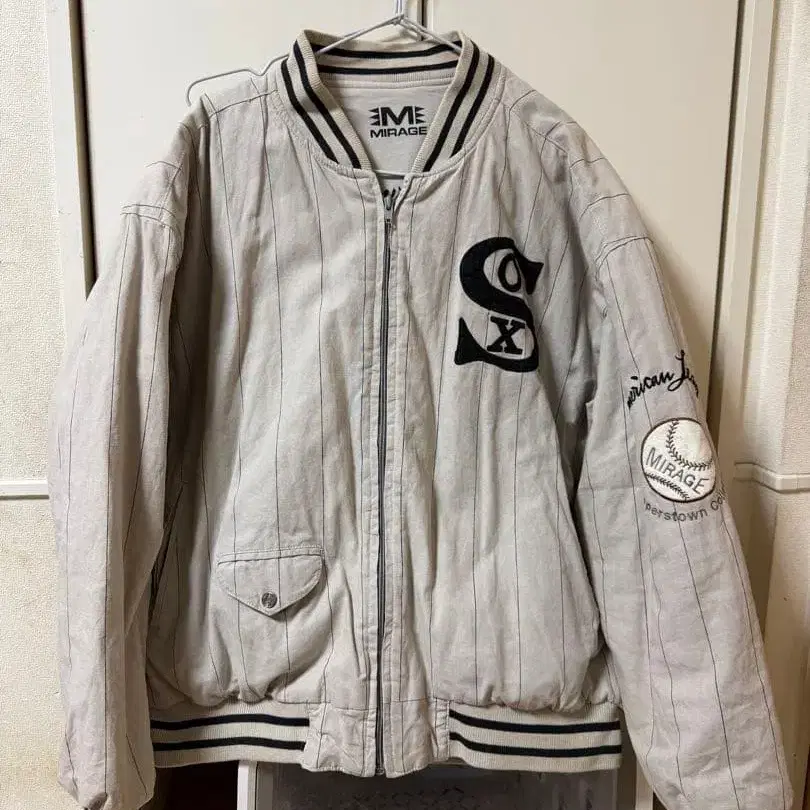 빈티지 90s Mirage 리버서블 화이트 양말 바시티 자켓
