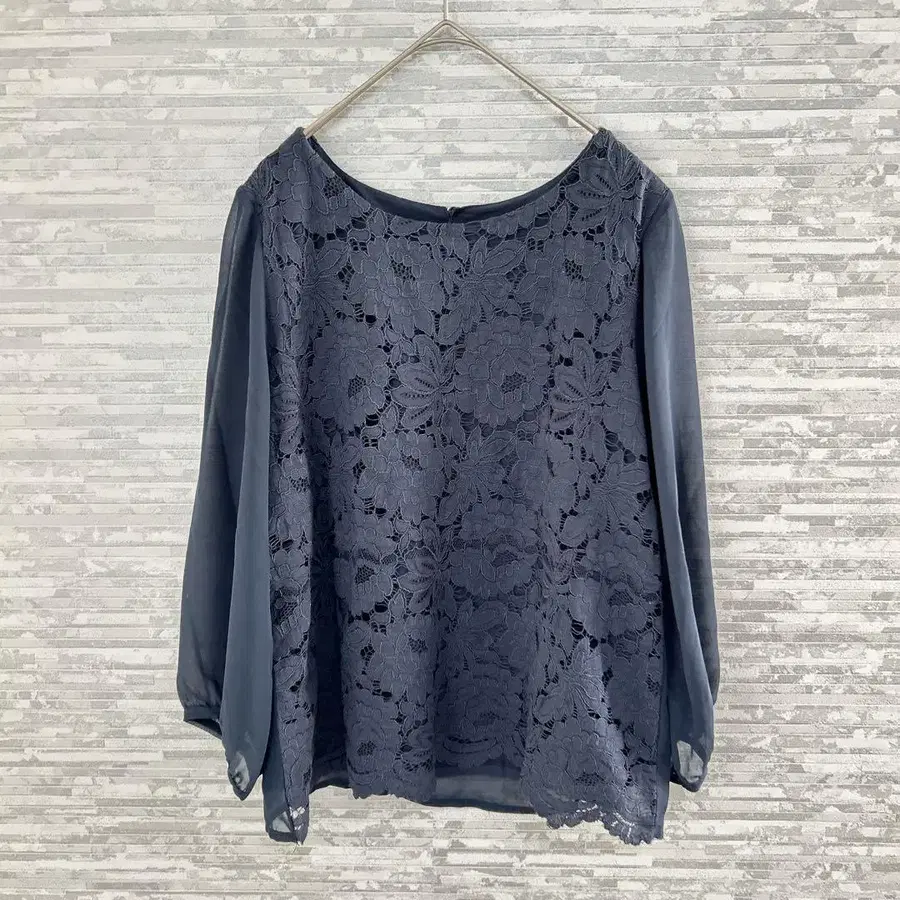 리오마르 네이비 레이스 블라우스 긴팔 L 사이즈 오피스 캐주얼 심플