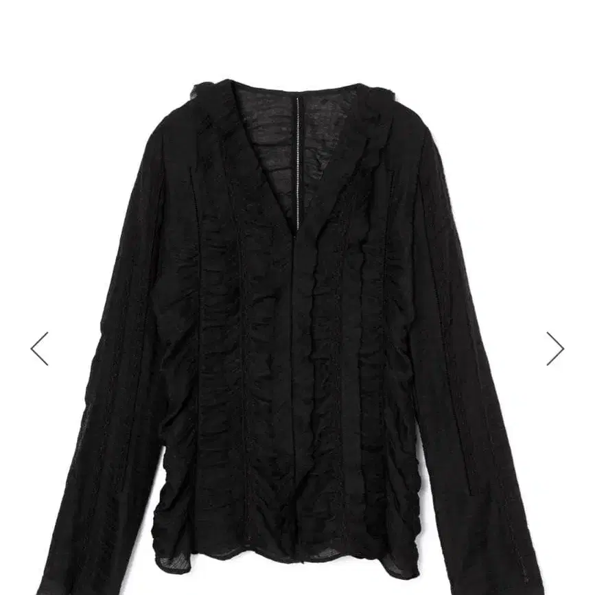 양류 크레이프 원단을 가로로 사용하여, 전체적으로 찡그린 듯한 표정을 준 블라우스입니다.