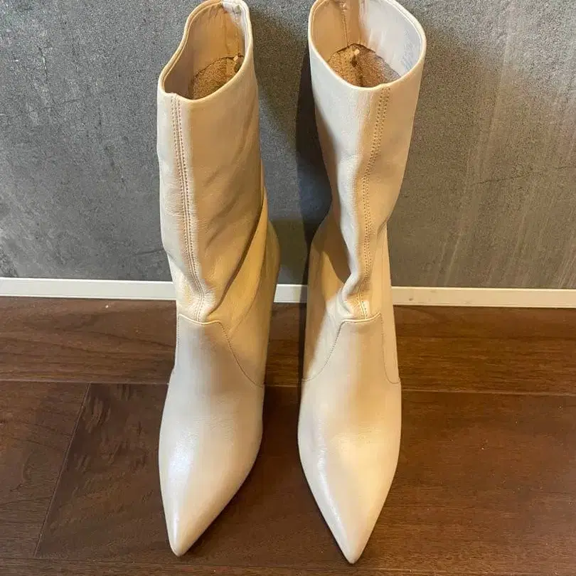 화이트 가죽 스틸레토 슬리브 부츠