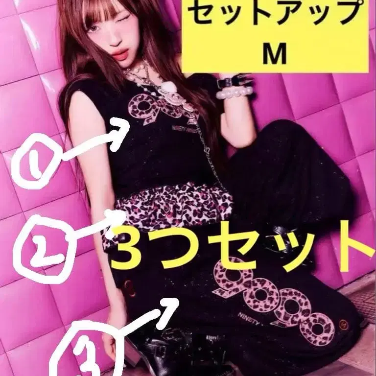 9090girl 셋업 M 사이즈 랩 스커트 포함 표범 무늬 글리터