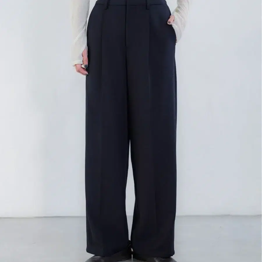 • PLST 2024년 모델 와이드 팬츠 웜 리저브 센터 프레스 네이비