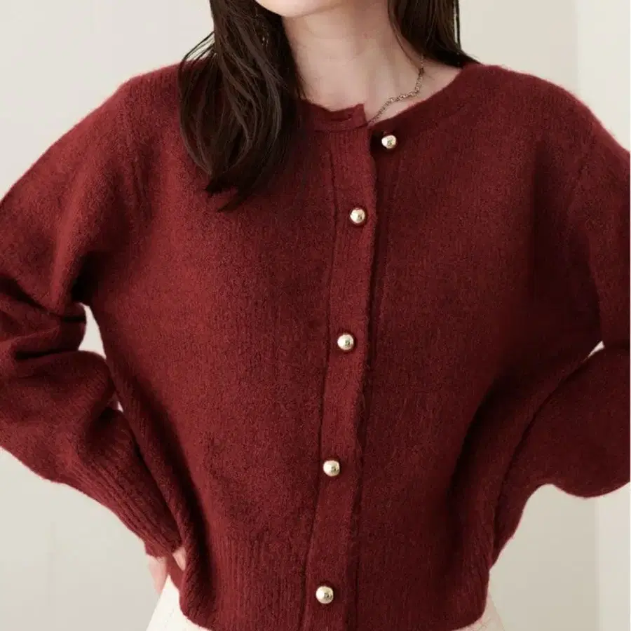동글동글한 모양의 귀여운 단추는 달콤함을 억제하여 성숙하고 페미닌한 인상을 줍니다.