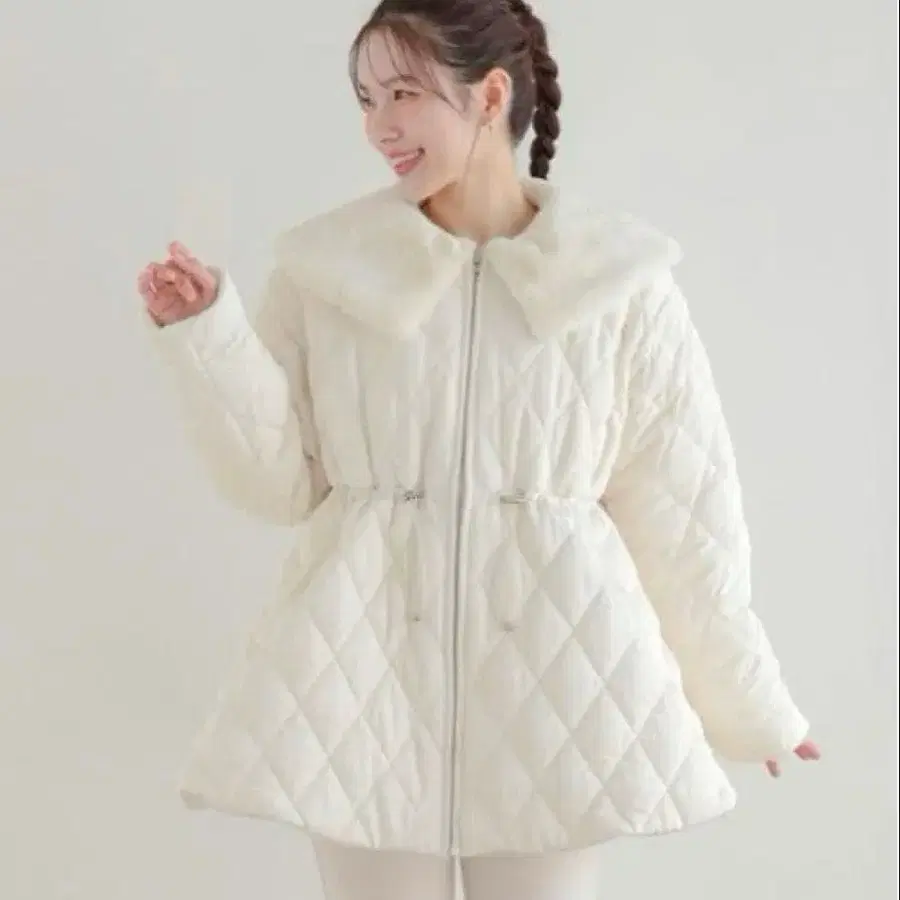 [ 새상품 택 포함 ] fit more 퍼 옷깃 퀼팅 코트 화이트