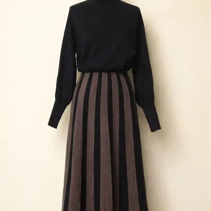 [ 새상품급 ] 라그나문 니트 원피스 긴팔 스트라이프 블랙