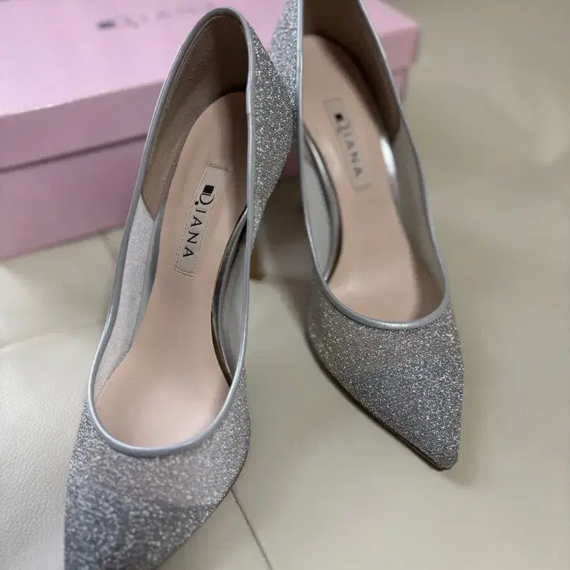 DIANA 라메 결혼식 펌프스 23cm 글리터 실버